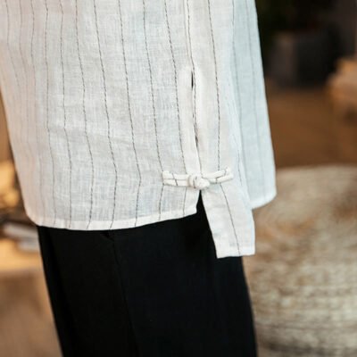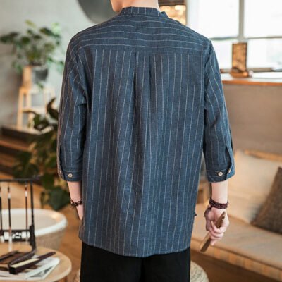Be the first to review “Buddha Stones Half Button Striped Three Quarter Sleeves Linen Men’s Shirt”