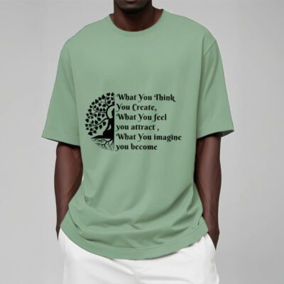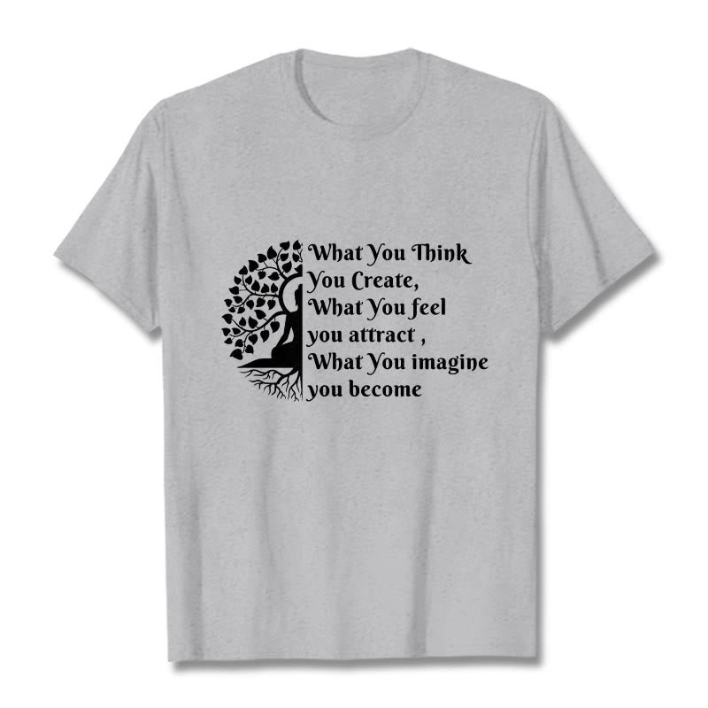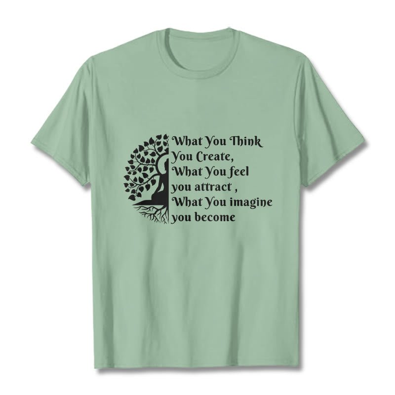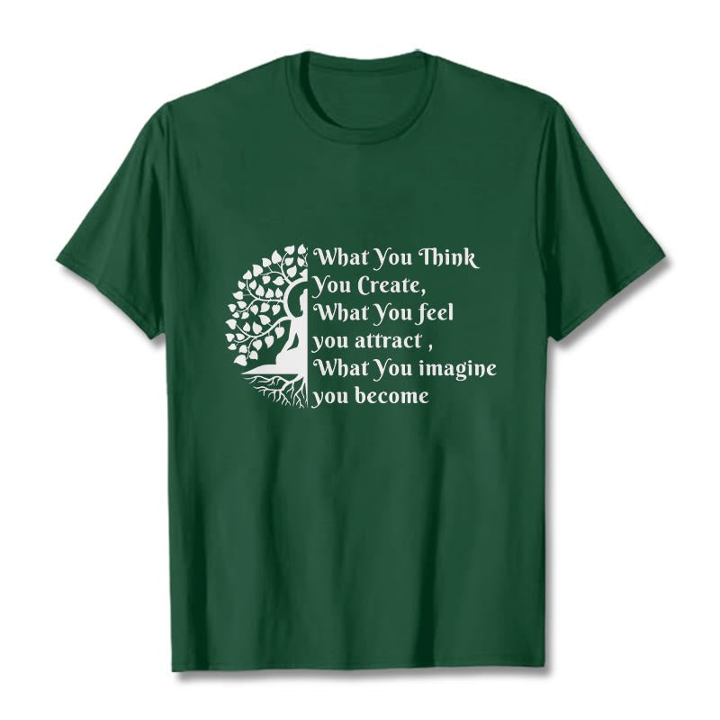 • DESIGN INSPIRATION: This T-shirt design featuring a Half-Meditation Buddha and a half tree symbolizes spiritual growth. inner peace. and the deep connection between enlightenment and nature. It reflects the journey of awakening rooted in mindfulness and harmony with the natural world.