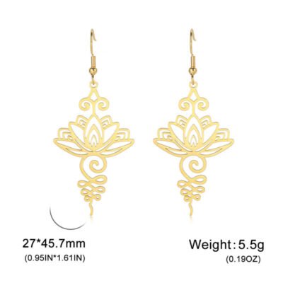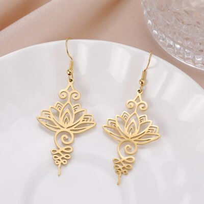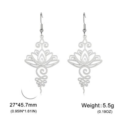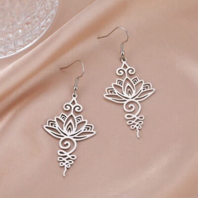 Be the first to review “Buddha Stones Hollow Lotus Flower Stainless Steel Enlightenment Metal Drop Earrings”