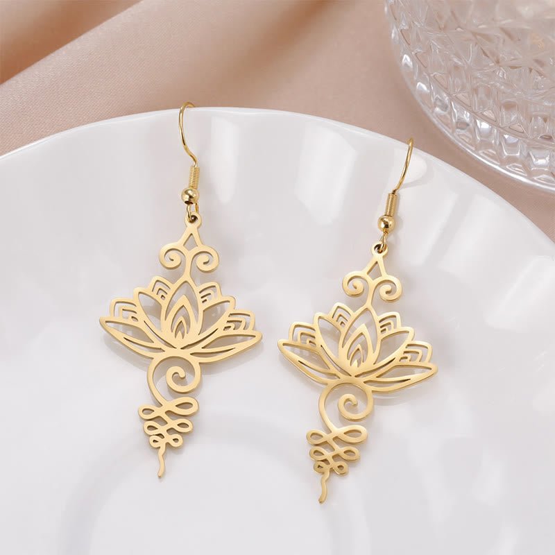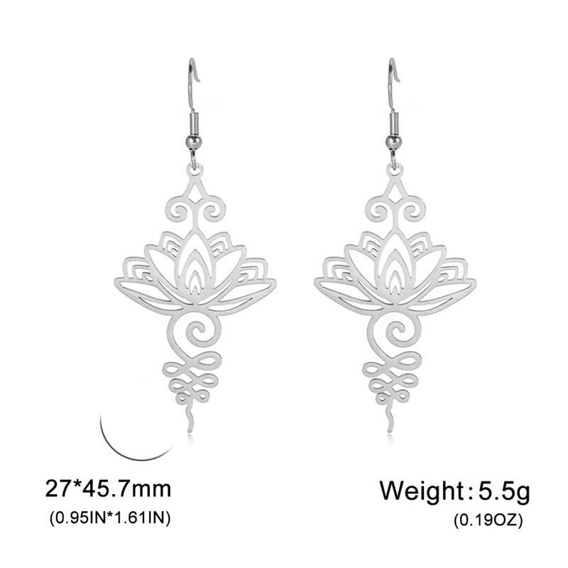 Buddha Stones Hollow Lotus Flower Stainless Steel Enlightenment Metal Drop Earrings