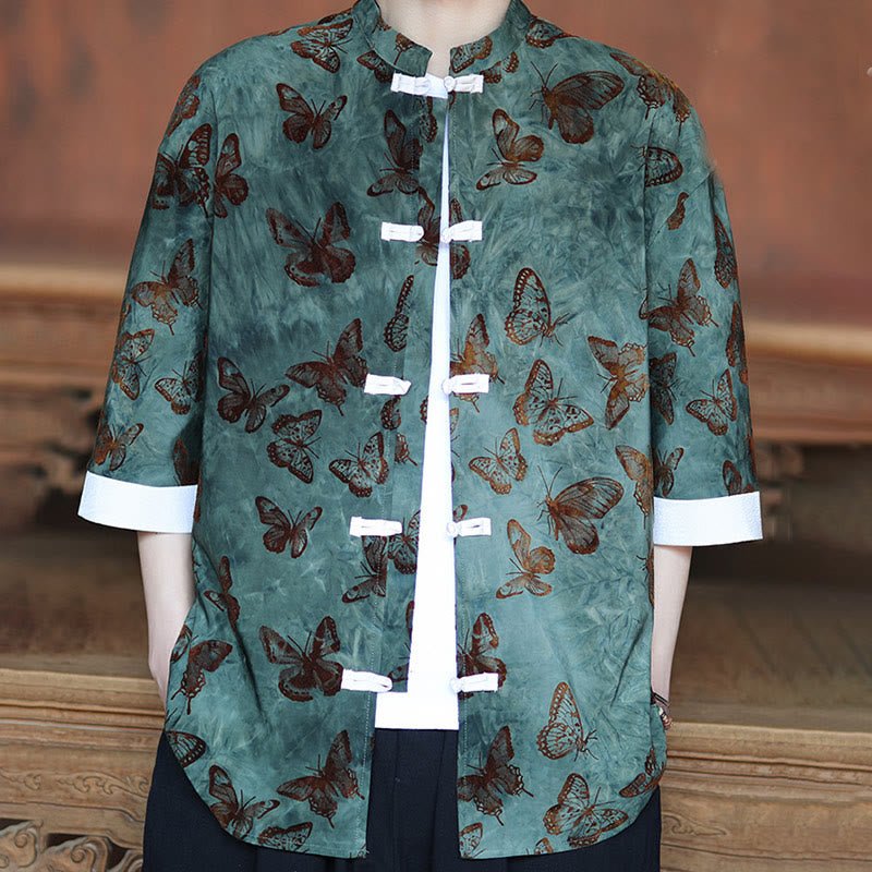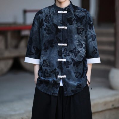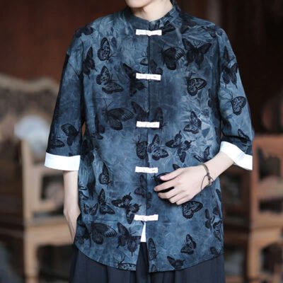 Be the first to review “Buddha Stones Jacquard Butterfly Pattern White Frog-Button Design Stand Collar Men’s Three Quarter Sleeve Cotton Shirt Cardigan”