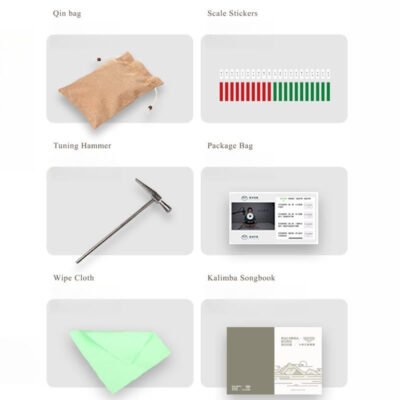 • Package Included: Kalimba*1. Kalimba Songbook*1. Tuning Hammer*1. Note Sticker*1. Cleaning Cloth*1. Storage Bag*1