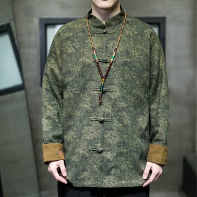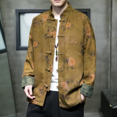 Be the first to review “Buddha Stones Leaves Flower Frog-button Tang Suit Cotton Men’s Jacket Shirt”