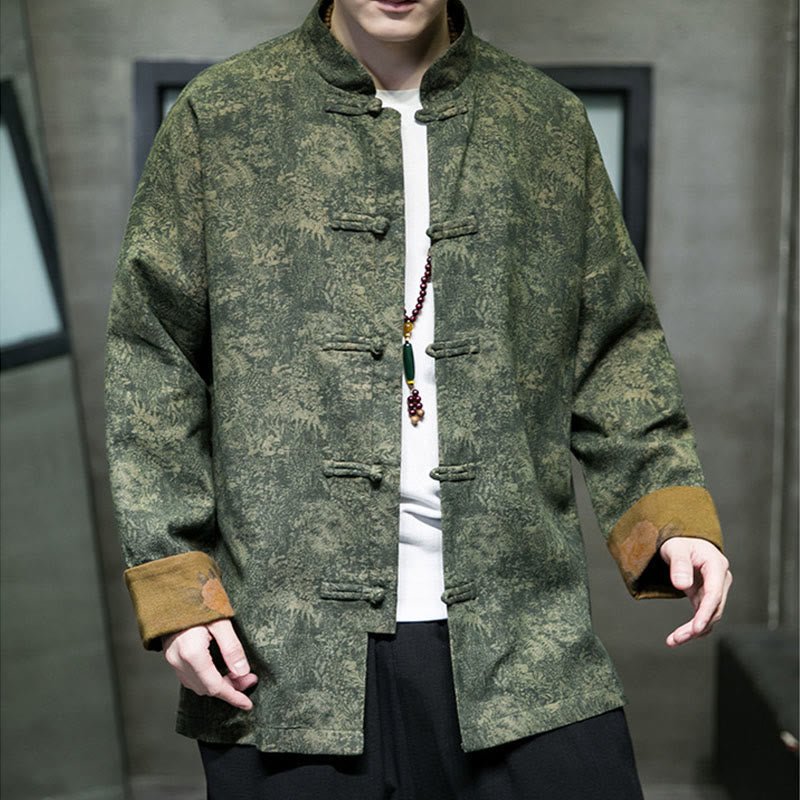 Buddha Stones Leaves Flower Frog-button Tang Suit Cotton Men’s Jacket Shirt