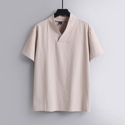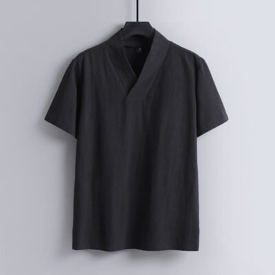 Be the first to review “Buddha Stones Loose Men’s T-Shirt Solid Color Top Short Sleeve V Collar Breathable Linen Shirt”