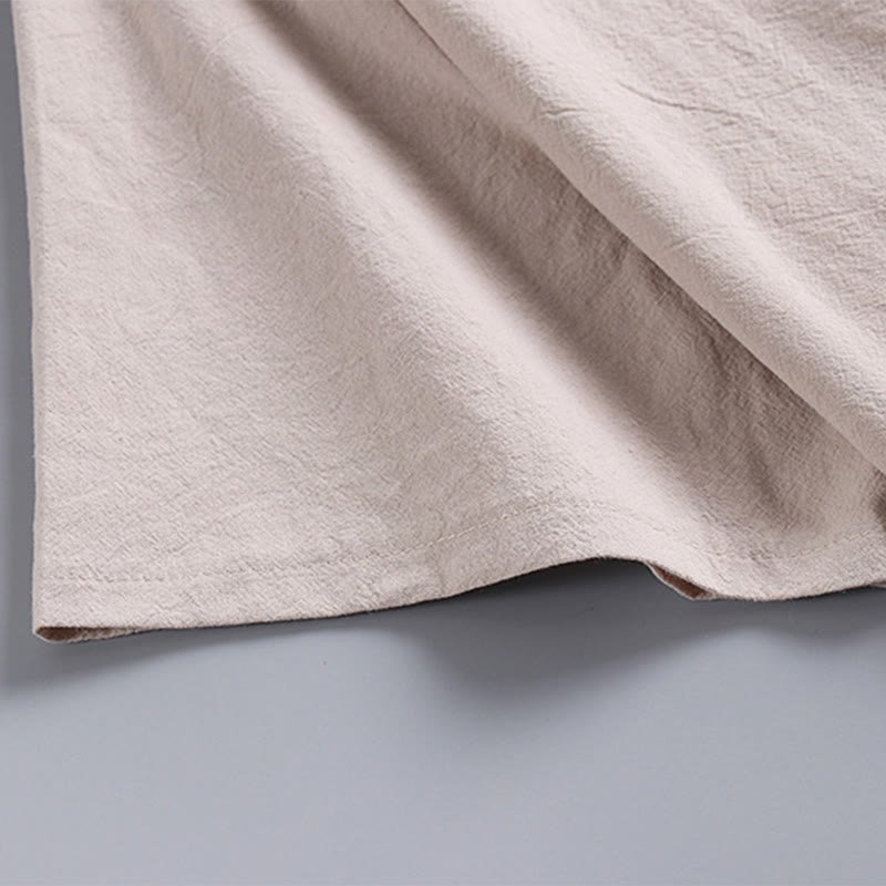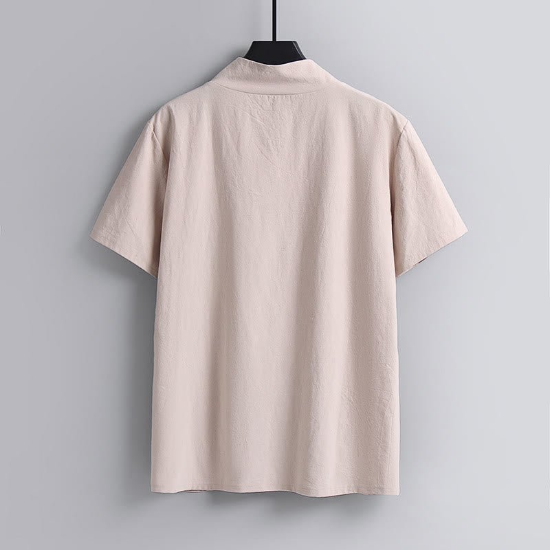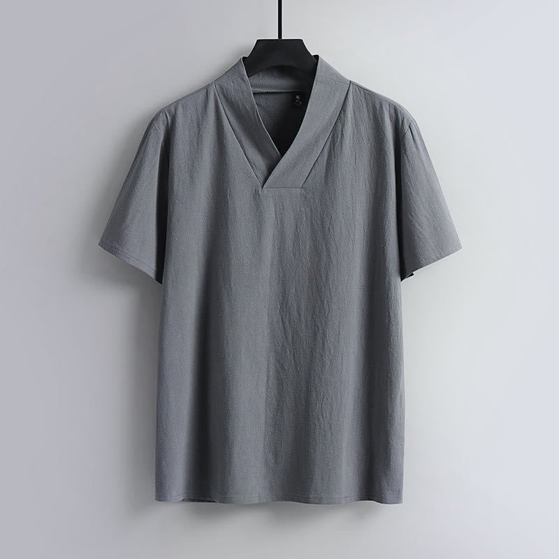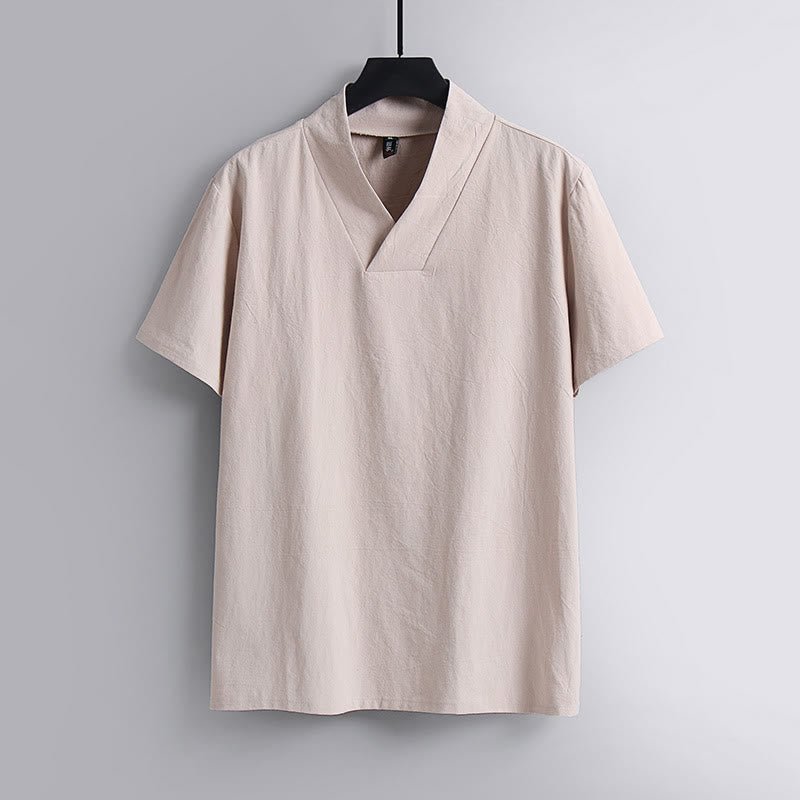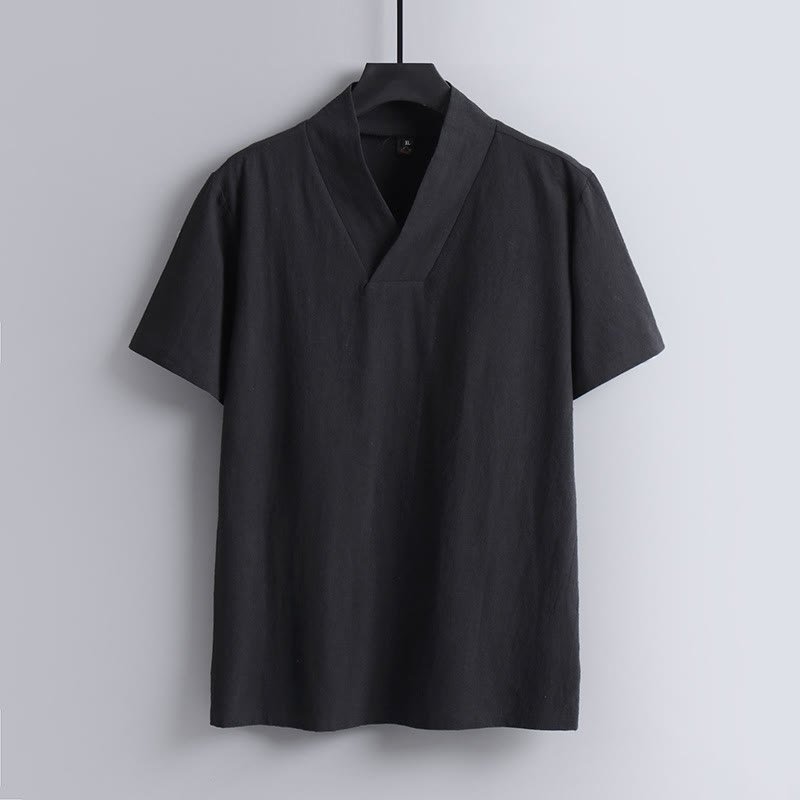 Buddha Stones Loose Men’s T-Shirt Solid Color Top Short Sleeve V Collar Breathable Linen Shirt