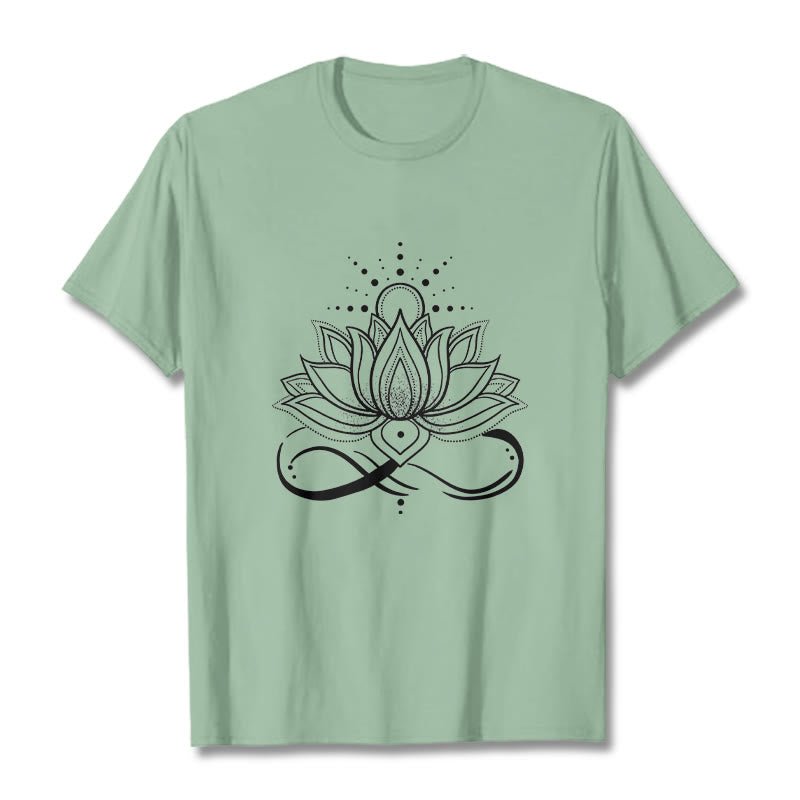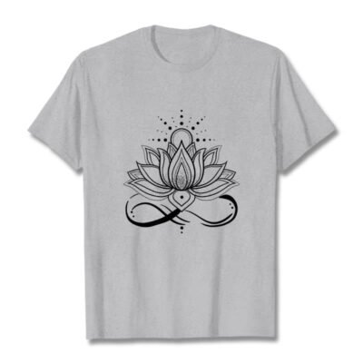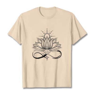 • DESIGN INSPIRATION: This T-shirt design features a lotus flower with a sun at its center. symbolizing purity. enlightenment. and new beginnings. The lotus represents spiritual growth and resilience. while the sun signifies energy. vitality. and the source of life.