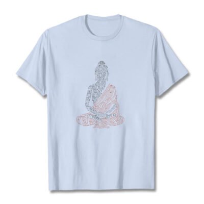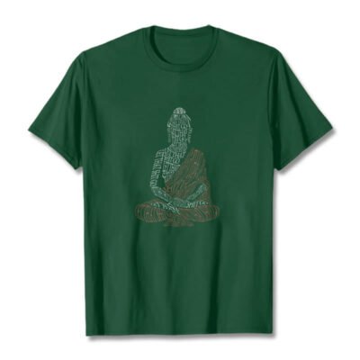 Meditating Buddha Cotton T-shirt features a unique dual-tone text design forming a serene Buddha image at the center. Crafted from breathable cotton. this T-shirt provides comfort for all-day wear. The Buddha symbolizes mindfulness and peace. while the bold text inspires the release of negativity. This meaningful design promotes inner calm and serves as a reminder to cultivate positivity in life.