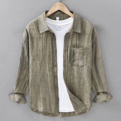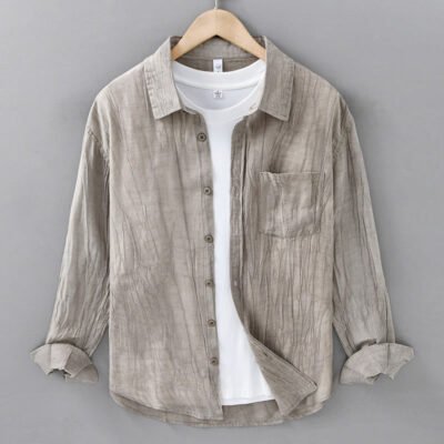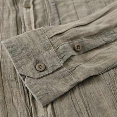 Be the first to review “Buddha Stones Retro Pleats Buttons Men’s Long Sleeve Ramie Linen Shirt With Pockets”