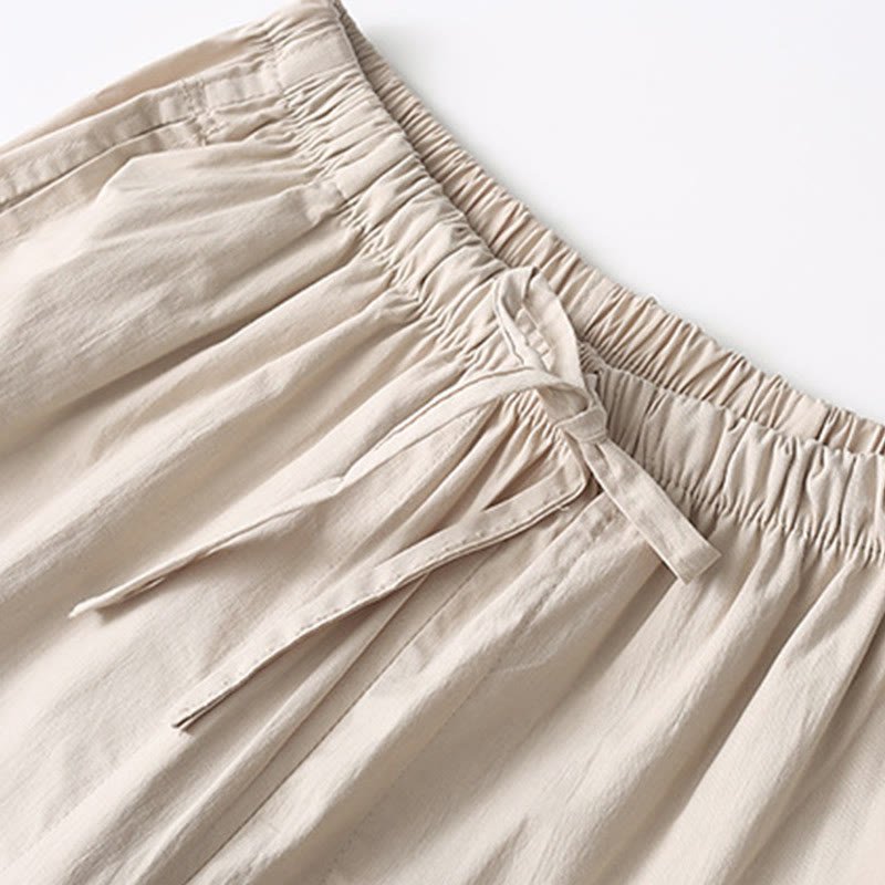 Buddha Stones Tang Frog-Button Three Quarter Sleeve Shirt Wide Leg Pants Cotton Linen Men’s Suit