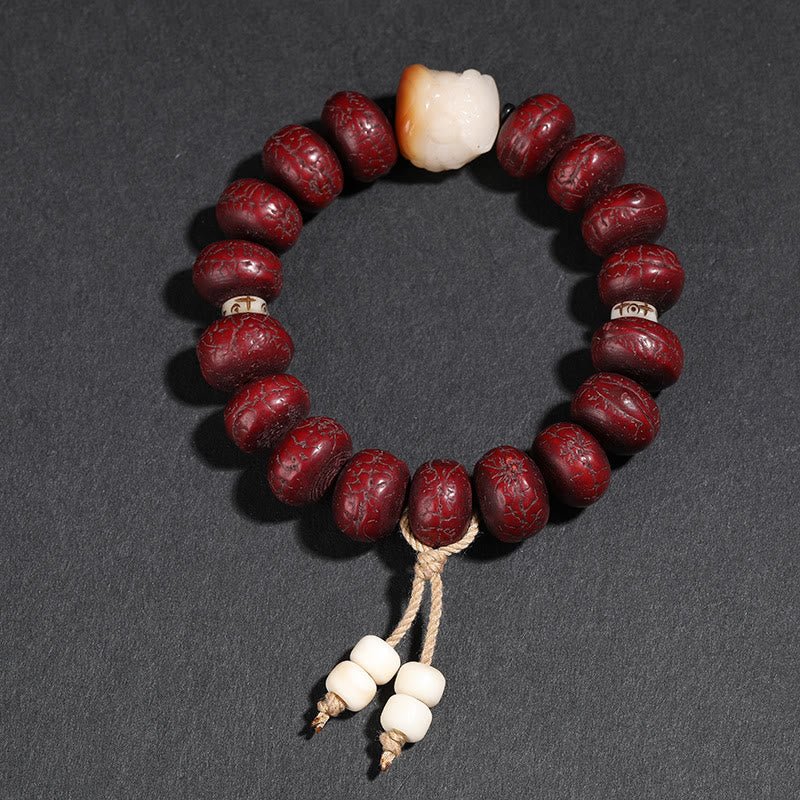 Buddha Stones Tibet Bodhi Seed Dzi Bead Dancing Lion Luck Bracelet Wrist Mala