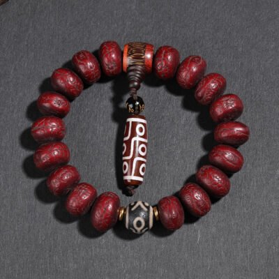 Dzi bead (Tib. གཟི།; pronounced “zee”; alternative spelling: gzi) is a type of stone bead of uncertain origin worn as part of a necklace and sometimes as a bracelet. Dzi beads are precious jewelry from Tibetan culture which is generally prized as protective amulets.these beads are believed to attract local protectors. dharmapalas or deities or maybe beneficial ghosts. ancestors or even bodhisattvas. Because of this. dzi beads are always treated with respect in Tibetan culture. Nine-Eye Dzi Bead is the symbol of The Nine Planets. It includes the activity of the Universe and the wisdom of the humanity. Nine-eyed beads is the most popular of all Dzis. brings all kinds of luck and blessings; protection. good health. purify negative energy expand intelligence and wisdom.It helps the investors with the successful development of new ideas in rolling in wealth.