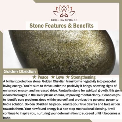 A brilliant protection stone. Golden Obsidian transforms negativity into peaceful. loving energy. You’re sure to thrive under the positivity it brings. showing signs of enhanced energy. and increased drive. Fantastic stone for spiritual growth. this gem clears blockages in the solar plexus chakra. improving mental clarity. It enables you to identify core problems deep within yourself and provides the personal power to find a solution.
