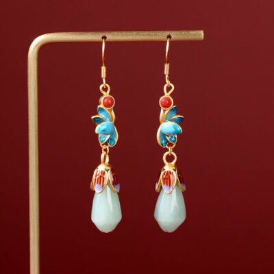 Be the first to review “Buddha Stones Magnolia Flower Jade Pattern Luck Prosperity Drop Dangle Earrings”