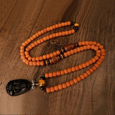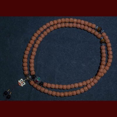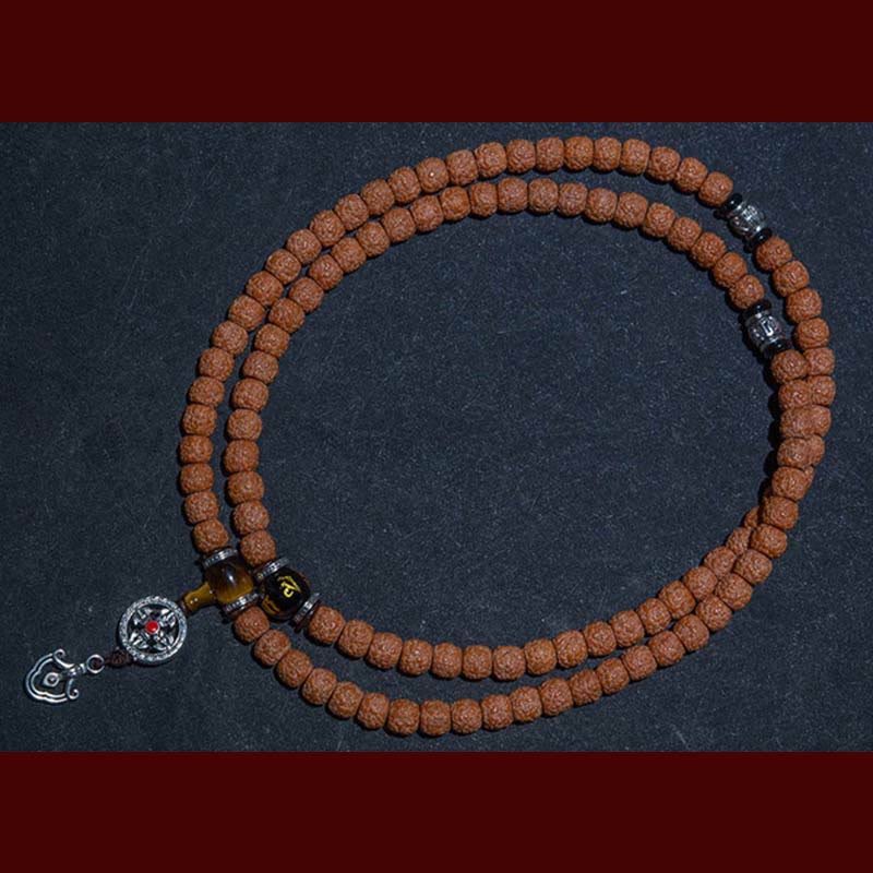 • Material: Bodhi Seed. Tiger Eye. Yak Bone. Copper. Cinnabar. Turquoise. Black Onyx. Black Obsidian. Dzi Bead
