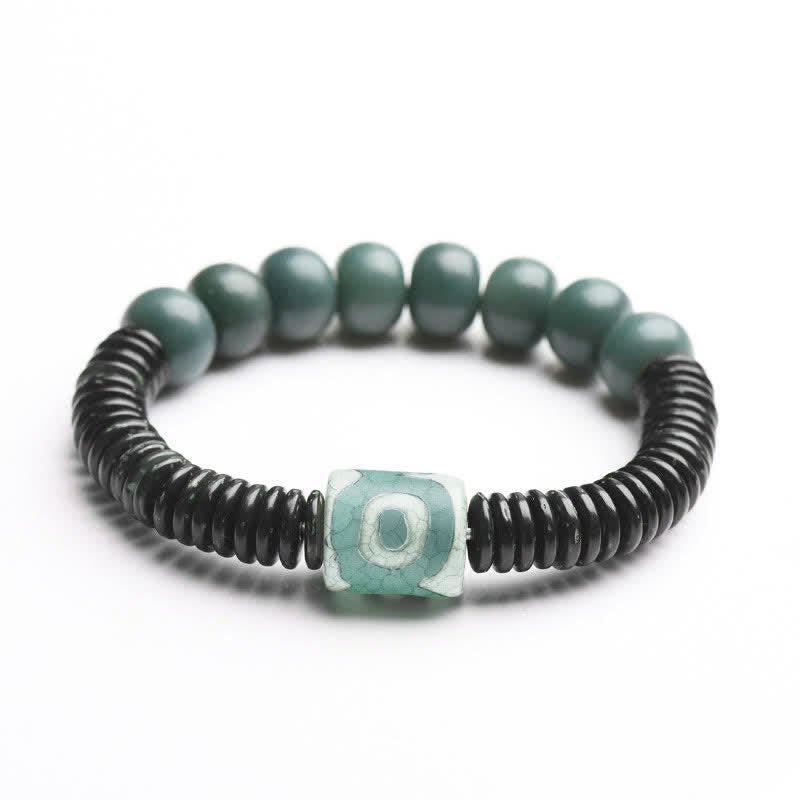 Tibetan Cyan Bodhi Seed Dzi Bead Coconut Shell Keep Away Evil Spirits Bracelet