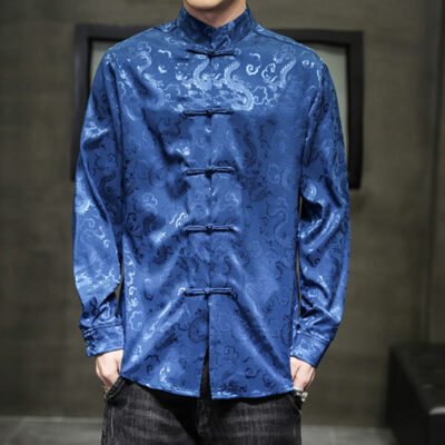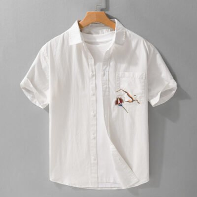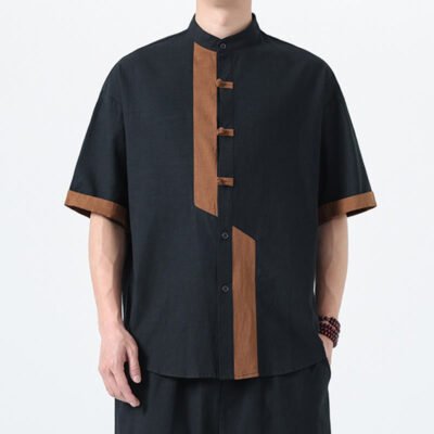 Buddha Stones Casual Solid Color Frog-Button Embroidery Men’s Cotton Linen Shirt Cardigan