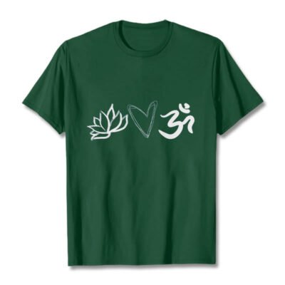 Buddha Stones Casual Lotus Heart Pattern Om Symbol Sanskrit Cotton Tee T-shirt