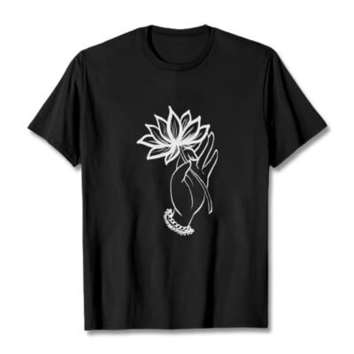 Buddha Stones Casual Hand Holding Lotus Flower Pattern Cotton Tee T-shirt