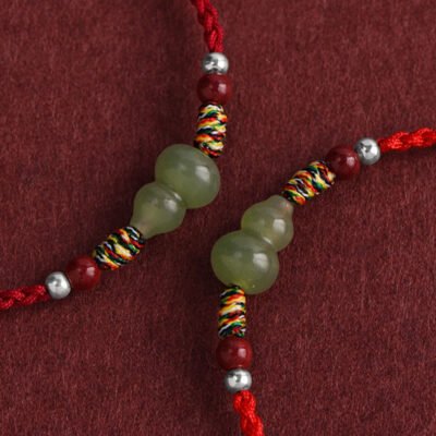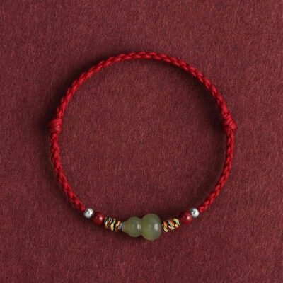 Buddha Stones Natural Hetian Jade Peace Buckle Protection Luck Braided Bracelet Anklet