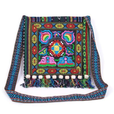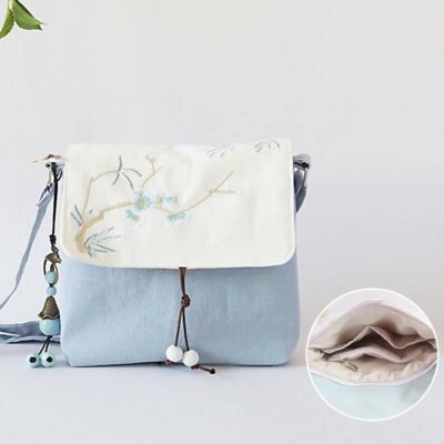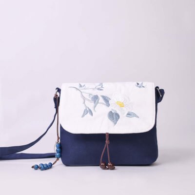 Buddha Stones Embroidered Flowers Wisteria Lily Cotton Linen Tote Crossbody Bag Shoulder Bag Handbag