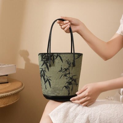 Buddha Stones Crane Deer Seawater Wave Wood Handle Metal Chain Change Purse Crossbody Bag Hangbags