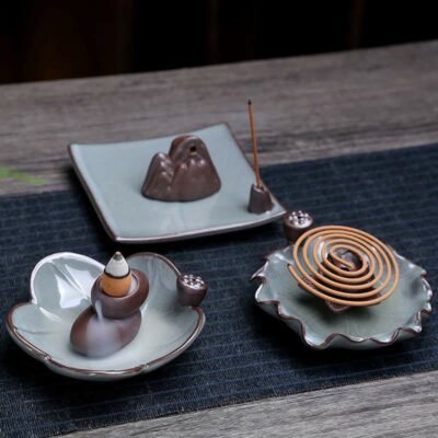 Buddha Stones Lotus Flower Leaf Pod Spiritual Healing Ceramic Stick Incense Burner Decoration