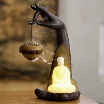 Buddha Stones Lotus Buddha Hand Auspicious Clouds Pattern Meditation Resin Backflow Incense Burner