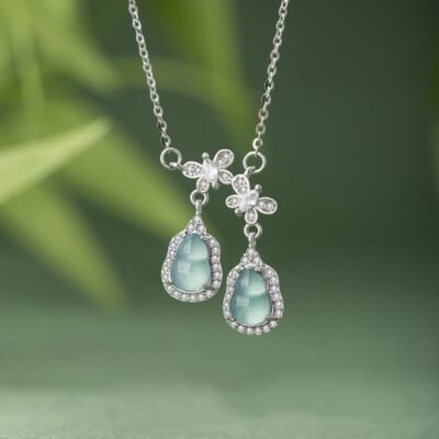 Buddha Stones 925 Sterling Silver Green Jade Double Gourd Butterfly Luck Necklace Pendant