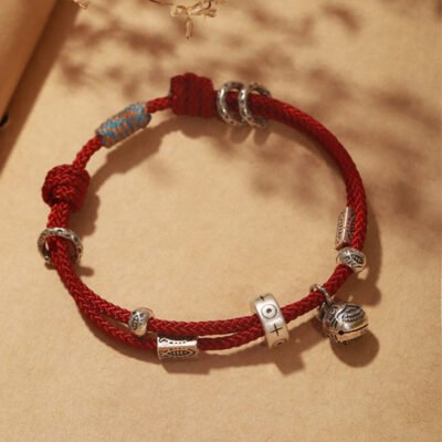 Buddha Stones 925 Sterling Silver Good Fortune Fu Character Agate Pearl Red String Braid Bracelet