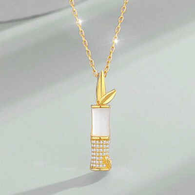 Buddha Stones 925 Sterling Silver Hetian White Jade Bamboo Happiness Necklace Pendant