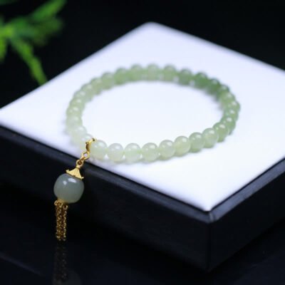 Buddha Stones 925 Sterling Silver Hetian Jade Peace Buckle Beaded Luck Happiness Charm Bracelet