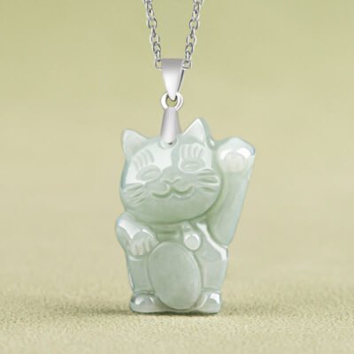 Buddha Stones 925 Sterling Silver Jade Fortune Cat Prosperity Necklace Pendant