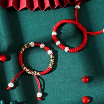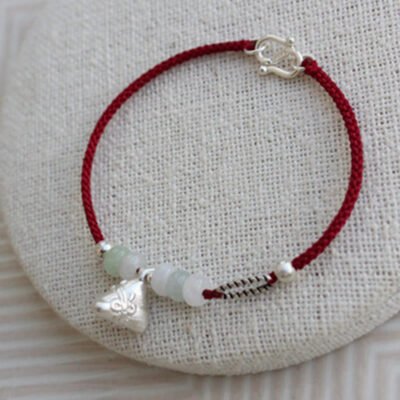 Buddha Stones 925 Sterling Silver Koi Fish Cinnabar Bead Wealth Handcrafted Braided Bracelet Anklet