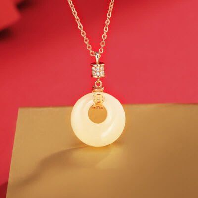 Buddha Stones 925 Sterling Silver Hetian White Jade Coin Flower Peace Buckle Luck Necklace Pendant