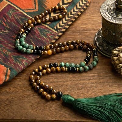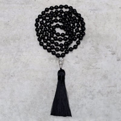 Buddha Stones 108 Mala Beads White Agate Amethyst Black Glitter Stone Protection Bracelet