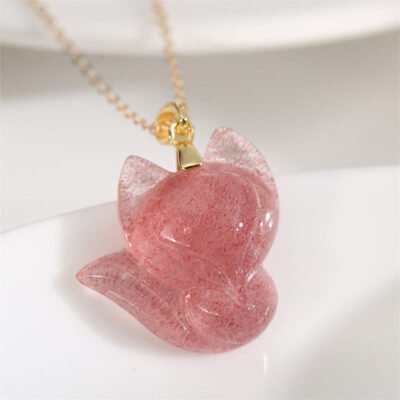 Buddha Stones 14k Gold Plated 925 Sterling Silver Strawberry Quartz Fox Healing Necklace Pendant