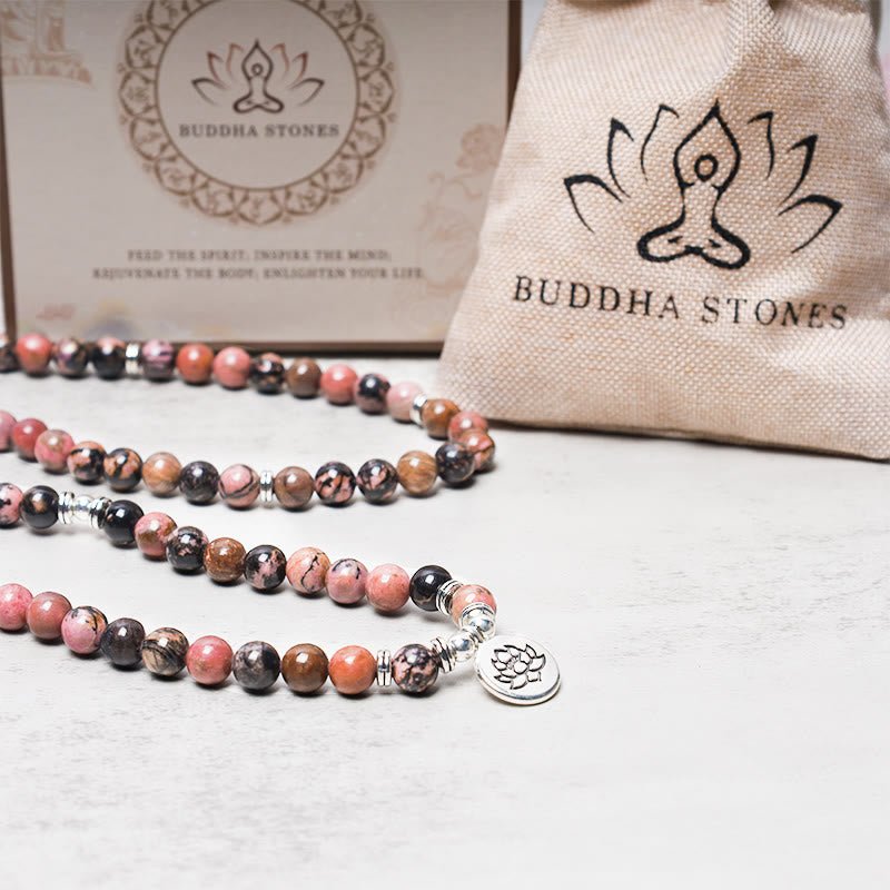Buddha Stones 108 Mala Beads Rhodonite Lotus Compassion Energy Bracelet Mala Bracelet BS 1