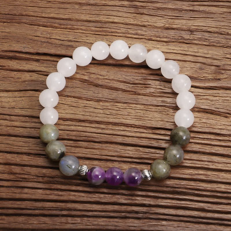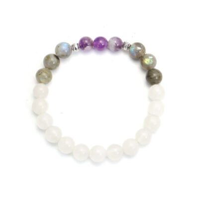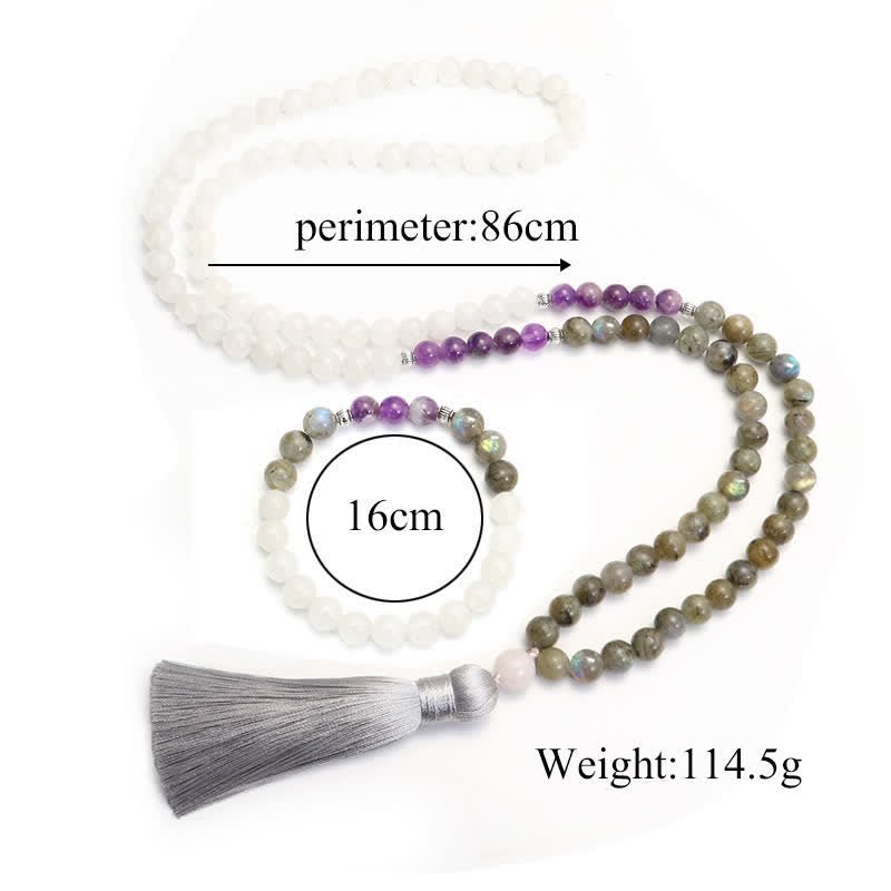 Embrace the power of protection and positivity with the Buddha Stones 108 Mala Beads. Made with White Agate. Amethyst. and Black Glitter Stone. this handcrafted bracelet promotes luck. peace. and courage. Find strength and balance in its beautiful design.