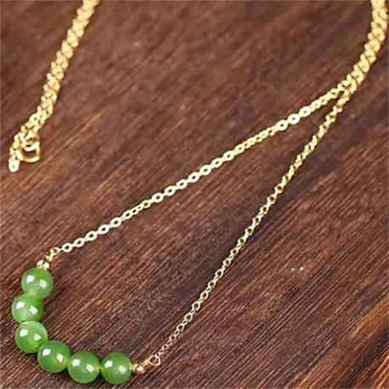 Buddha Stones 14k Gold Plated Hetian Cyan Jade Beaded Luck Necklace Pendant