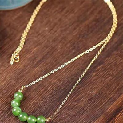 Be the first to review “Buddha Stones 14k Gold Plated Hetian Cyan Jade Beaded Luck Necklace Pendant”