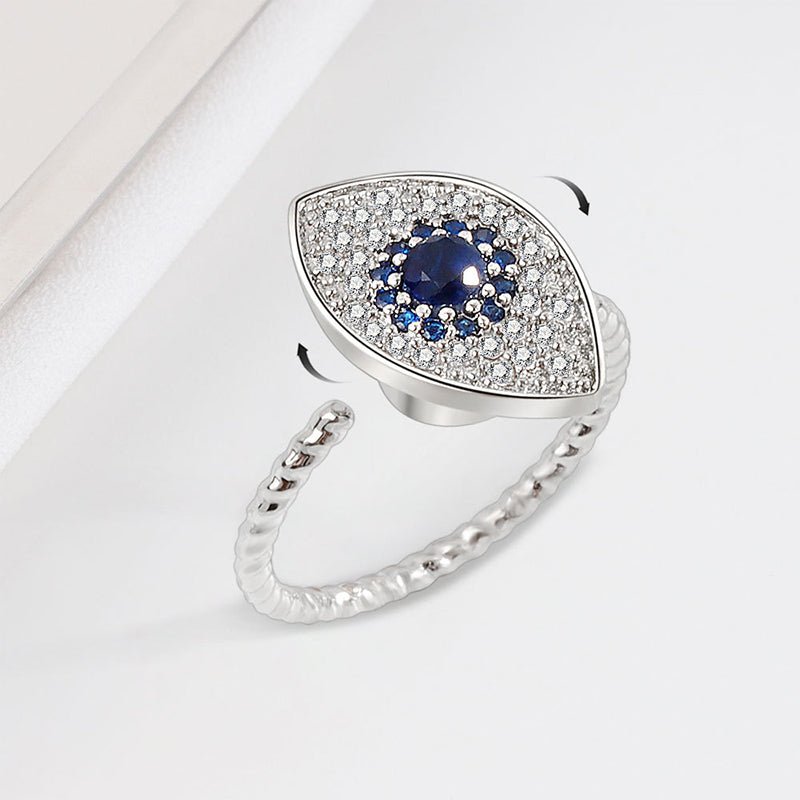 925 Sterling Silver Evil Eye Protection Blessing Rotatable Ring