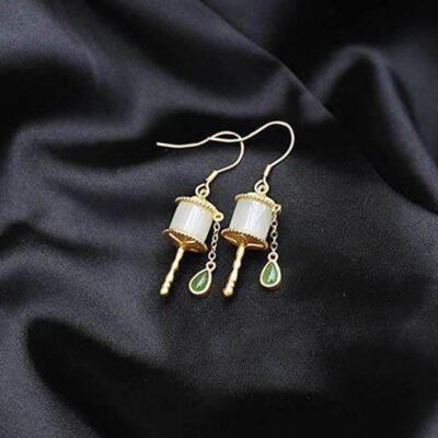 Be the first to review “Buddha Stones 925 Sterling Silver Jade Prayer Wheel Luck Drop Earrings”