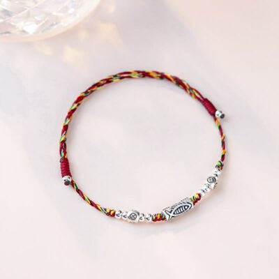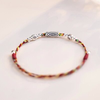 Buddha Stones 925 Sterling Silver Luck Koi Fish Braided Colorful String Bracelet Anklet
