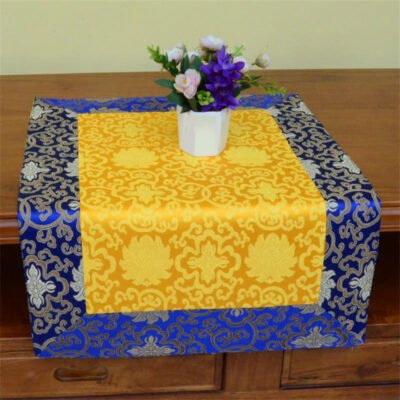 Elevate your spiritual practice with our intricately designed Brocade Prayer Altar Table Runner. Adorned with symbolic flowers. vajra. and dragons. it brings luck. strength. and protection to your altar. Made with high-quality brocade fabric. it adds beauty to any sacred space.