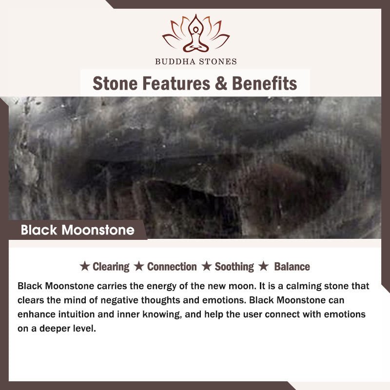 Black Moonstone carries the energy of the new moon. It is a calming stone that clears the mind of negative thoughts and emotions. Black Moonstone can enhance intuition and inner knowing. and help the user connect with emotions on a deeper level.