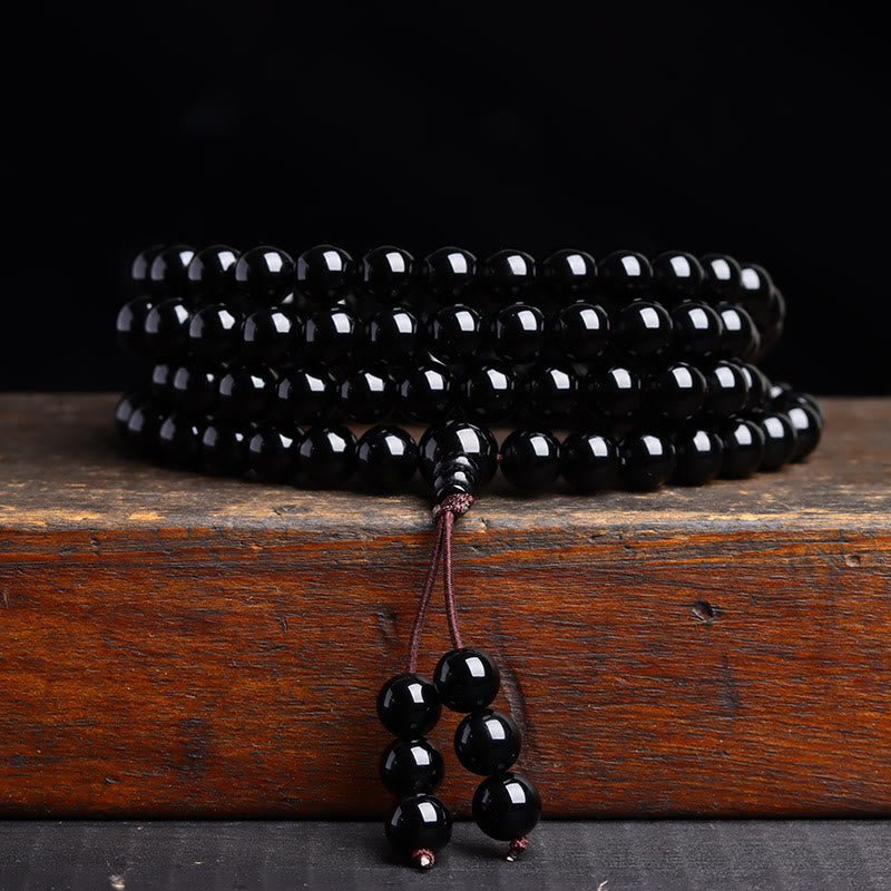 Buddha Stones 108 Mala Beads Black Obsidian lce Obsidian Fulfilment Bracelet