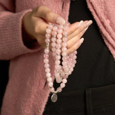Be the first to review “Buddha Stones 108 Mala Beads Natural Stone Rose Quartz Lotus Peace Bracelet”