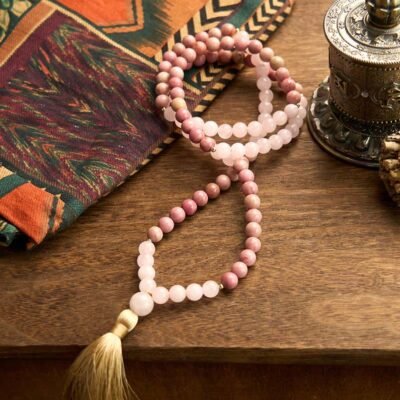 Be the first to review “Buddha Stones 108 Mala Beads Rhodonite Rose Quartz Tassel Healing Bracelet”