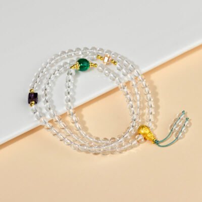 Be the first to review “Buddha Stones 108 Mala Beads White Crystal Clarity Bracelet”